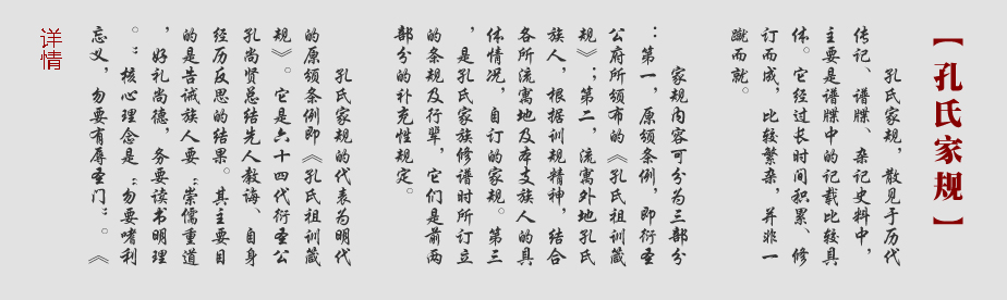 • 《孔氏家谱》要求子孙崇儒重道、好礼尚德,勿嗜利忘义