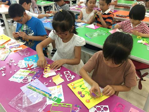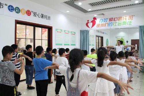7月16日,中荷村妇联和团委联合举办的暑托班正式举行开班活动。 一大早就有不少小学员按捺不住激动的心情,在家长的陪同下到达了上课地点,社工和志愿者也早早地就在指定地点等候着这些朝气蓬勃的新面孔。中荷村的志愿者给小朋友进行了额温测量,时刻关注小朋友的身体状况。当天上午进行了开班仪式和安全课堂,23个小朋友们纷纷进行了自我介绍,接着手工制作了小卡片,写上了自己对未来的展望。下午,拉丁舞老师王老师给小朋友们上了一堂活泼生动的拉丁舞课。在王老师和志愿者的引导下,小朋友们都积极加入舞蹈行列,扭动着自己小小的身躯。通过王老师的耐心讲解,小朋友们对陌生的拉丁舞有了新的认识。接着,小朋友们还手作了贺卡,送给自己亲爱的爸爸妈妈,进行了“我吃了一个世界”和“大风吹”的游戏,同学们在游戏中互相认识,巩固了彼此之间的友谊。 爱心暑托班,用心付出收获爱。爱心暑托班不仅让孩子们度过一个有意义的假期,开阔了孩子们的眼界,也吸引了更多青年志愿者参与到这项公益行动中。爱心暑托班,关键在于“爱”,志愿者利用假期参与暑托班活动,弘扬了志愿者精神,锻炼了自己的耐心和责任心,是一笔不可多得的宝贵财富。