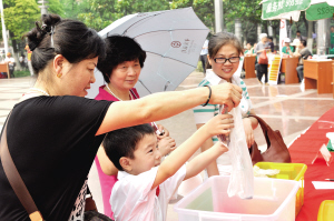 发布时间:2012-06-11 14:23 字体:【大 中 小】 6月9日,太仓市中心广场上,启动了“绿色·让太仓更美好”主题活动,市妇联积极发放环保资料,并向市民宣传环保理念,在中心广场废旧电池回收主题活动上,广大市民家庭积极参与活动。据再生资源网络建设办公室粗略统计,当天共回收了5000多节的废旧电池。