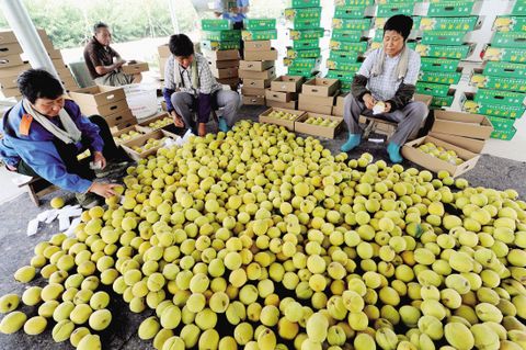 近日,随着黄桃的陆续上市,沙溪镇锦沙黄桃专业合作社的社员们都忙碌了起来。虽然受到了台风“海葵”的影响,但是合作社仍有近6万斤左右的产量。图为,合作社女能手在包装刚采摘的优质黄桃。